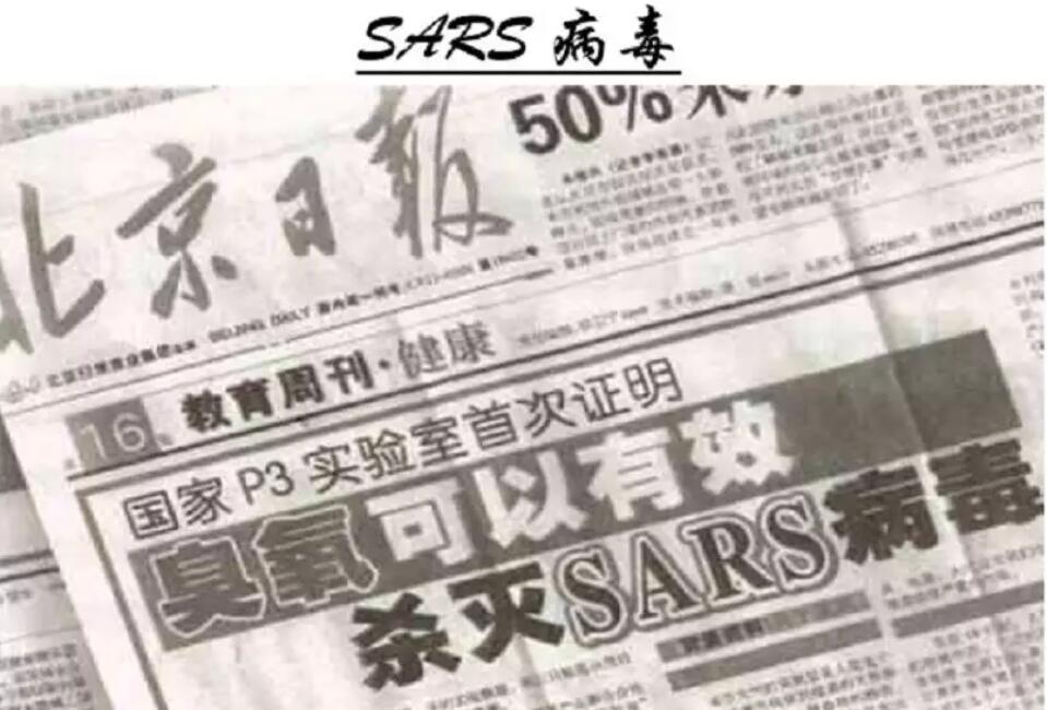 武漢大學(xué)生命科學(xué)學(xué)院的張珈敏,鄭從義等人在“中國(guó)消毒學(xué)雜志”2004年01期上發(fā)表的《臭氧水對(duì)SARS病毒的滅活效果觀察》一文中寫:用臭氧水對(duì)SARS病毒進(jìn)行滅活實(shí)驗(yàn),當(dāng)臭氧含量為27.73mg/L時(shí),作用4min可完全滅活SARS病毒;當(dāng)臭氧含量為17.82mg/L,作用4min和4.86mg/L作用10min,均可使SARS病毒的滅活率達(dá)100%。